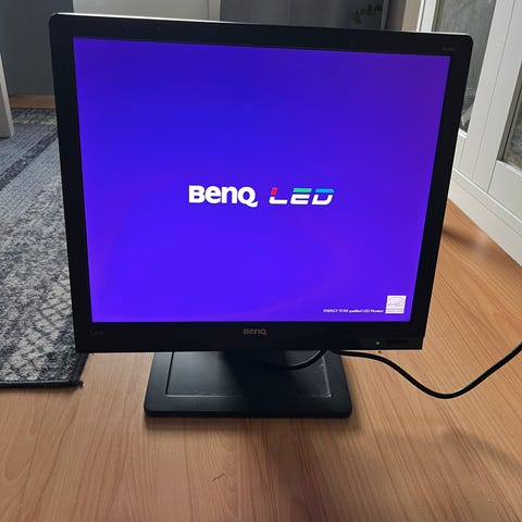 Skjermen har rektangulært format og står på rund fot. Strømforsyning og tilkoblingskabler følger med, slik det vises på bildene. Modellen er egnet til vanlig pc‑bruk som kontorarbeid, nettlesing og enkel multimedia.