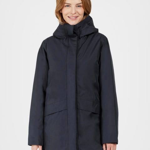 Jakken er Allsidig vind- og vanntett fritidsjakke i teknisk ripstop strukturmateriale med lett vattering. Den behagelige allværsjakken har god lengde, glidelåser i sidene for bevegelighet, toveis glidelås i front, skjult knepping med trykknapper, myk fleece i kragen, funksjonelle lommer med fleecefôr og mulighet for justering i ryggen. Ton i ton gummibadge og tricoloredetaljer. Praktiske refleksdetaljer på ermkant og på kanten av hetten. Modellen er 170 cm høy og bruker str S.