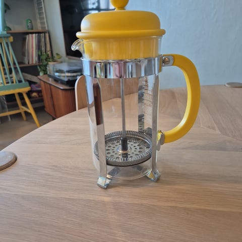 Søkeord: kaffe, kaffekanne, glass, metall
