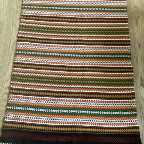 Etter min mor selger jeg et knapt brukt pledd med frynser. Tror det kun har hengt over en del av sofaen en kort periode.