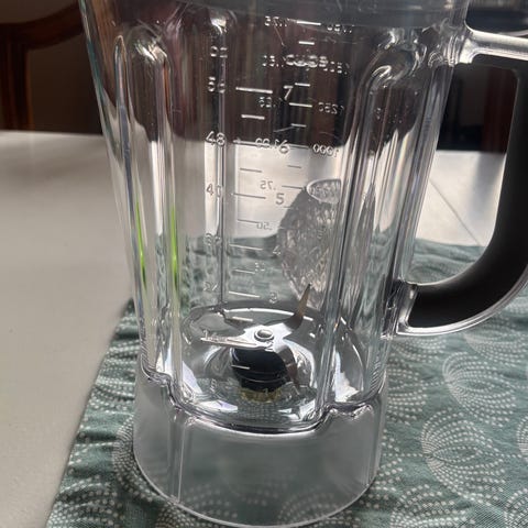 Kenwood blenderkanne i glass med lokk og integrert knivblad i bunnen. Kannen har håndtak og helletut, samt kobling i plast/metall i bunnen for feste på blenderbase. Egnet som erstatningskanne til kompatible Kenwood blendermodeller for tilberedning av smoothies, supper og andre flytende blandinger.