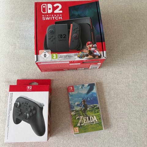 Selger min pent brukte Nintendo Switch 2 spillkonsoll ettersom jeg ikke bruker den mer . Kjøpt sommeren 2025. Følger med Zelda: Breath of the wild (uten etui)