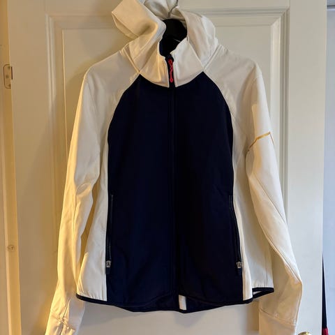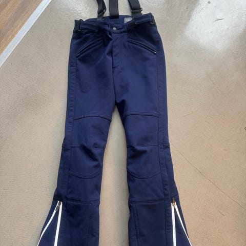 WoolLand bukse i størrelse XS. Buksen er blå og laget i et materiale med hovedsakelig polyester, polyamid og elastan, med noe polyuretan. Modellen har glidelåser nederst på beina og sømmer som gir en figurnær passform. Egnet som en tettsittende bukse til hverdagsbruk eller fritidsaktiviteter i kjøligere vær.