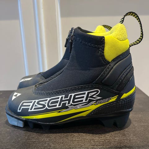 Fischer langrennsstøvler i svart/gul. Strørrelse 31. Lite brukt.