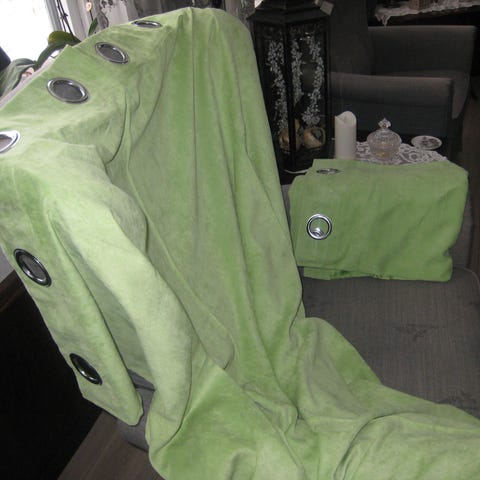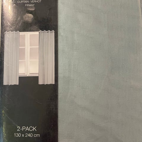 Gardinsett i 2-pack. Hver gardin måler 240 x 140 cm. Gardinene er i grått -lilla stoff med blomstermønster. Kan brukes med kanal og hemper, rynkebånd og rynkebånd for krokoppheng.