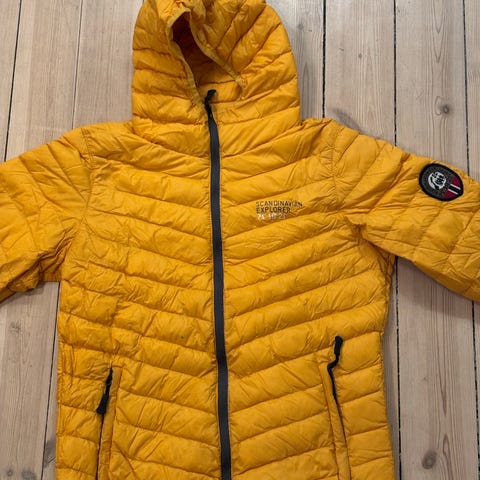Kjempefin tynn dunjakke fylt med 80% dun og 20% fjær. Perfekt som mellomlag eller lett jakke. Str. S. Fargen er grønn. Kjøpt på myprotein.