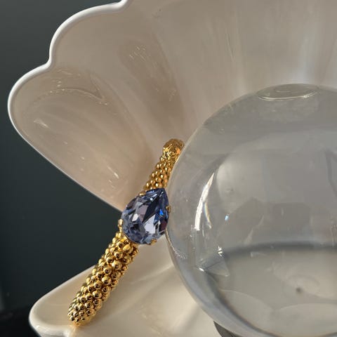 Håndlaget i Hellas. Stein i Swarowski krystall. Laget av messing med 18 karat gull- eller rhodiumbelegg, med nøye utvalgte krystaller av høyest mulig kvalitet.