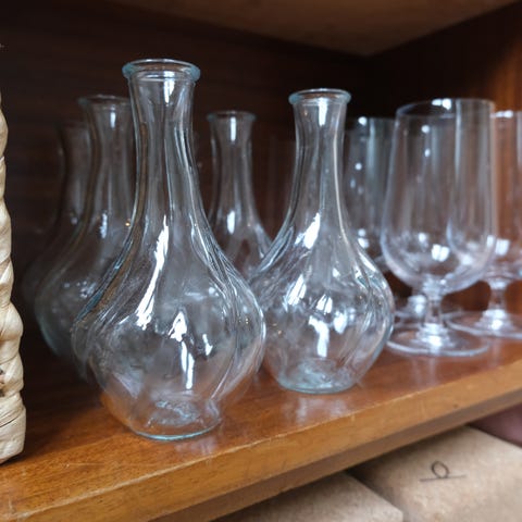 9 munnblåste vinglass, antikvariske (med noen nag): 130kr for alle