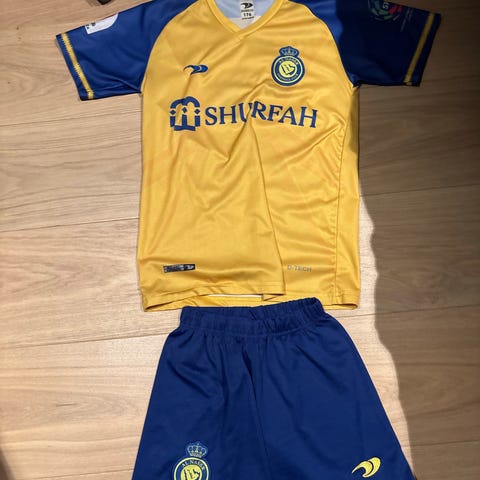 Umbro fotballdrakt for herre i størrelse XS. Trøyen har korte ermer og glidelås i halsen. Fargekombinasjon svart med gule kontrastfelt. Materialet er typisk lett og pustende syntetisk stoff til idrettsbruk.