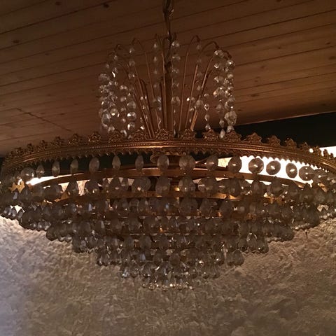 Eldre lysekrone med glassprismer.