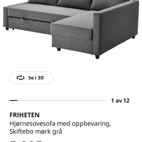 Har ikke mulighet til å levere, så selger må ha bil med plass til henting. Kan skru sjeselongen av for lettere henting hvis det er ønskelig.