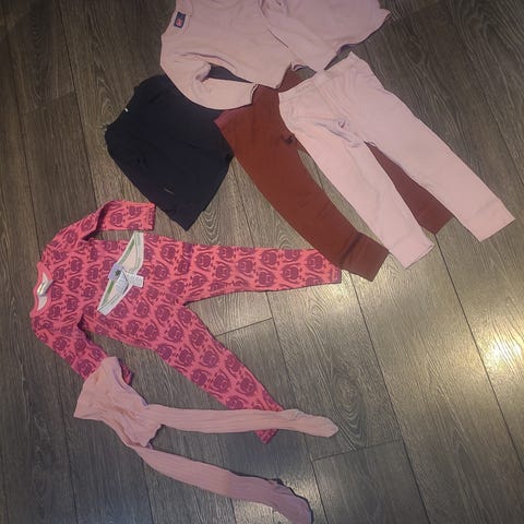 Klærne er kjøpt brukt, men dessverre opplever datteren min ubehag når hun har ull direkte mot huden, så plaggene har ikke blitt brukt av henne.