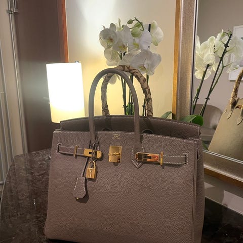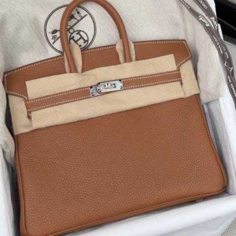 Selger en ubrukt og svært ettertraktet Hermès Birkin 25 i klassiske Gold med Gold Hardware og Togo skinn.