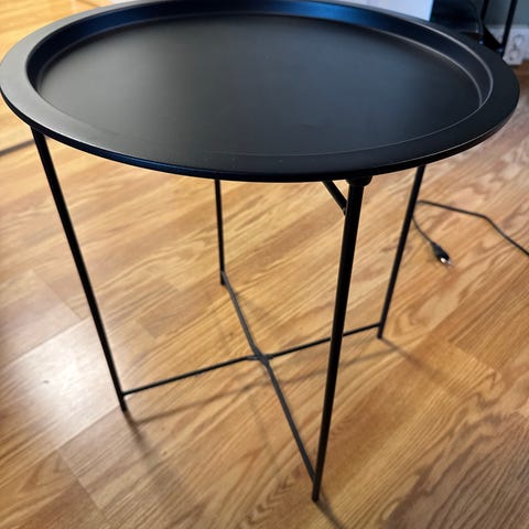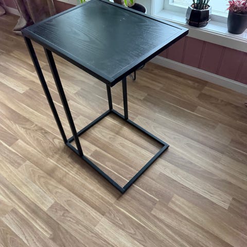 Pent brukt sidebord i sort metall. Toppen kan tas av bena.