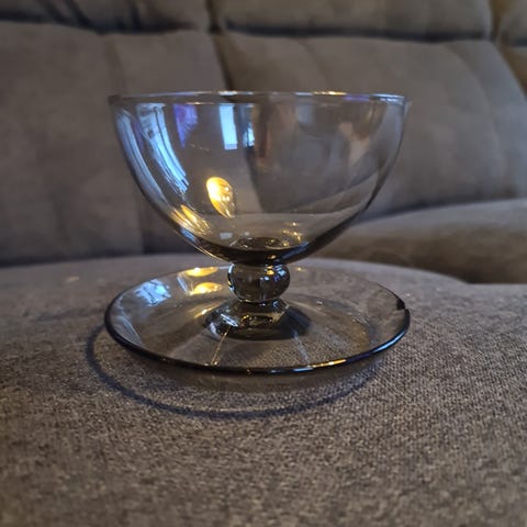 Nydelig fat/skål på stett med bølget, firkantet form, avrundede hjørner og rund fot