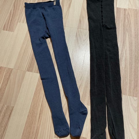 Lappet hull i ullbukse. Strømpebukser selges ullbukse følger med.