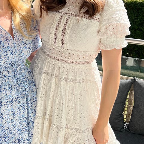 By Malina Estelle v-neck chiffon mini dress str. L. Kjolen er flerfarget med søtt blomstermønster og har ytterstoff i 100 % viskose. Fôret er i 100 % rayon.