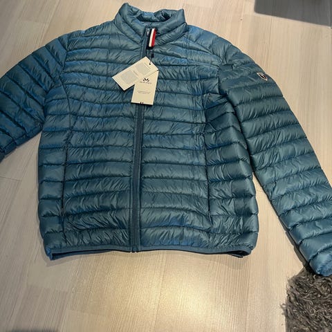 Colmar dunjakke for herre i størrelse 54. Jakken er blå og fylt med dun, noe som gir god isolasjon og lav vekt. Modellen har quiltet mønster og hel glidelås foran. Egnet som ytterjakke i kjøligere vær og kan brukes både til hverdags og lett friluftsliv.