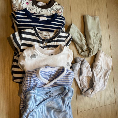 Alt pent brukt og helt. Ingen bruksmerker unntatt den hvite kortermede bodyen som har et par lite synlige gule flekker på magen (se bilde).