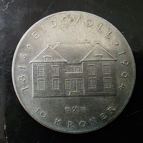 Norges Bank sølvmynt 10 kroner 1814 Eidsvoll 1964 (1 av 2)