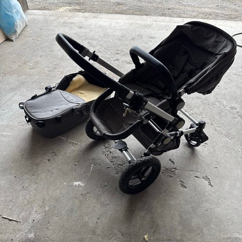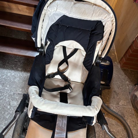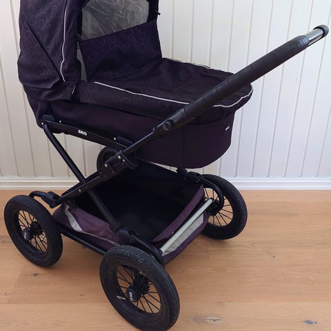 BRIO Go barnevogn i svart farge med hvitt understell. Vognen er pent brukt og i god stand.