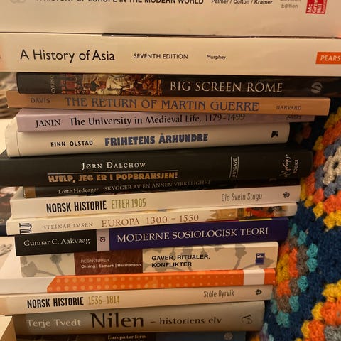 Fem faglitterære bøker, primært innen historie og statsvitenskap;