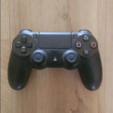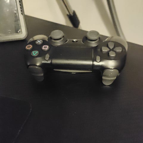 Sony DualShock 4 kontroller til Playstation 4 i svart farge. Trådløs håndkontroller med innebygd touchpad, Share-knapp, retningsknapper, analoge spaker og skulderknapper. Kontrolleren har innebygd høyttaler, hodetelefonutgang og lysstripe på toppen. Egnet for bruk med Playstation 4-konsoll og kompatible spill som støtter DualShock 4-kontroller.