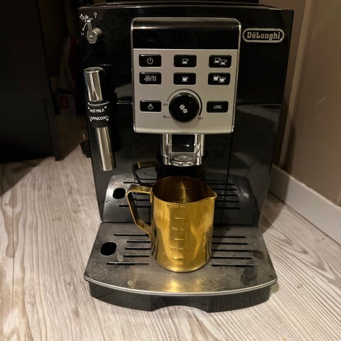 De'Longhi Dedica espressomaskin i sølvfarge.