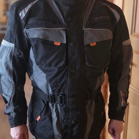Den har ryggskinne, albue/underarm beskyttelse + forsterkninger. Praktisk lomme på ryggen, samt lommer i front og innerlomme. Kan fint kombineres med Artech bukse, det er glidelås inne i jakken til bukse.