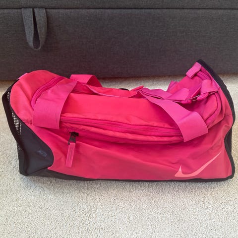 Nike treningsbag med 2 hovedrom med glidelås og 3 mindre innelommer, den ene med glidelås.