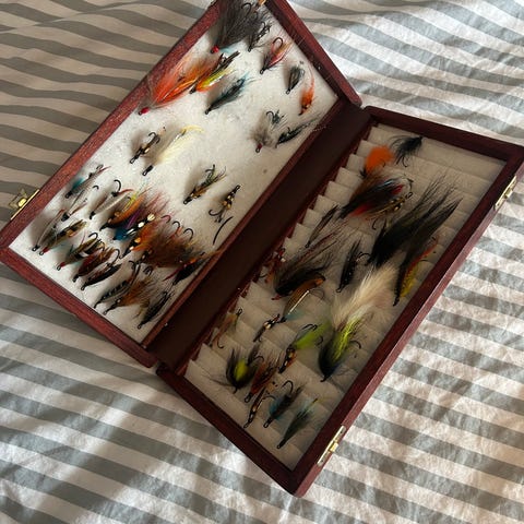 Mange kjente fluer og mye som kan brukes. Det aller meste i skrinet er ubrukt. Så å si alt ubrukt.