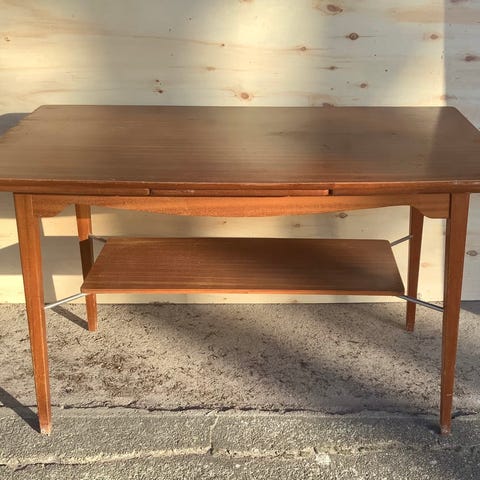 Lite salongbord i bjørk frå 1950 talet med dekor på plate.