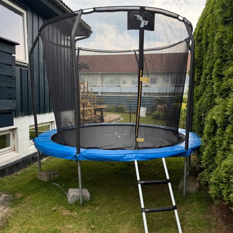 Trampoline gis bort. Ny i 2017. Blitt demontert og lagret inne hver vinter. Hadde to av samme type, men den ene ble delvis ødelagt i 2020 (tatt av vinden). Det følger derfor med mange ekstra deler. Må hentes.