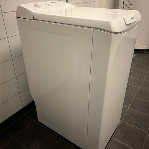 Whirlpool toppmatet vaskemaskin i hvit utførelse. Maskinen har topplokket åpning, betjeningspanel med programvelger og display på toppen, samt standard tilkobling for vann og avløp. Egnet for plassering i mindre rom der det er behov for en smal vaskemaskin med toppmating. Følger med en overgang fra slange til vannkranen bak, den var for liten for slangen hos oss, så den følger med dersom det skulle være behov. Må hentes innen fredag 27.02 ettersom vi skal flytte. Må bæres ned fra 5. etasje.