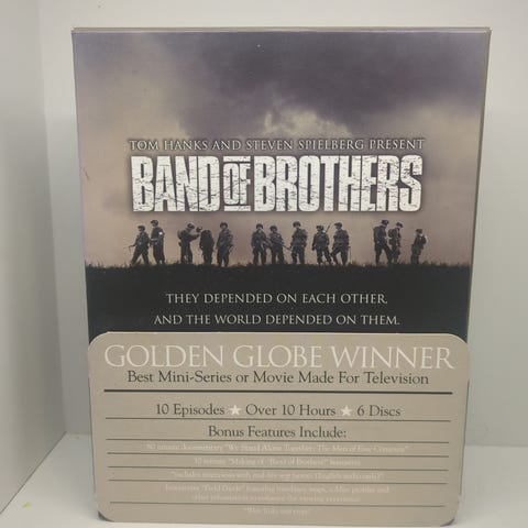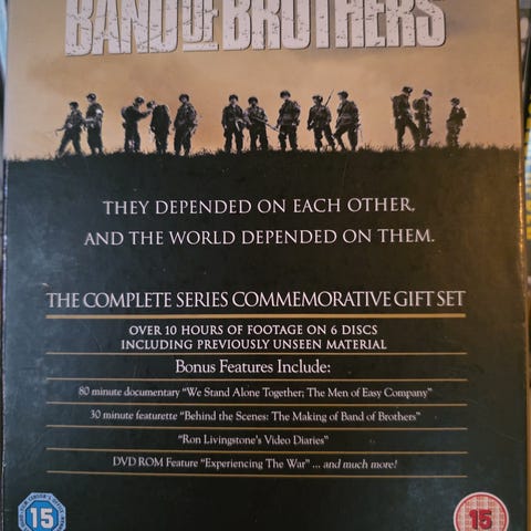 Band of Brothers komplett serie DVD-boks. Inneholder alle episodene av TV-serien fordelt på seks disker, innkludert en egen disk med bonusmateriale. Bokssettet samler hele serien i én utgave på DVD.