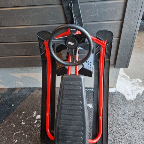 Stiga rattkjelke i svart farge. Kjelken har rattstyring og fotbrems, samt sete med riller for bedre feste. Selger to like. En solgt!