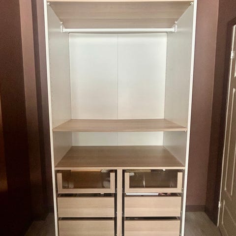 Alt er i god stand, pent og lite brukt, stått i walk in closet og brukt av voksen. Garderoben kan hentes i Åsgårdstrand. Du kan sende meg bud, jeg har oppført priser på skjermbilder og skrevet dette i annonsen.