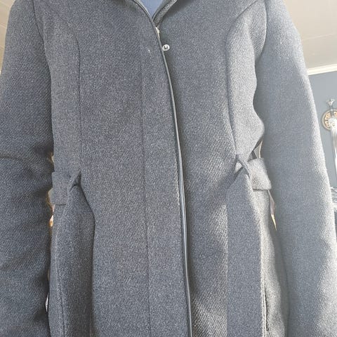 Gloverall duffelcoat i koksgrå farge. Klassisk modell med hette, treknapper/løkker i front og store påsydde frontlommer. Innsiden har rutet fòr i grått og rødt. Produsert i England. Unisex modell. Str S herre str M+ dame.