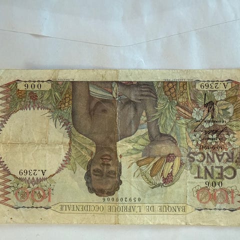Banque de France 5 nouveaux francs papirseddel med portrett av Victor Hugo. Seddelen er fra i perioden 1959-1966. Seddelen har flerfarget trykk med arkitektoniske motiver på begge sider. Nominell verdi er 5 NF (nouveaux francs). Egner seg som samlerobjekt innen numismatikk og historiske franske pengesedler.