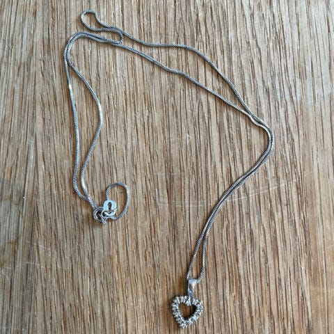 Flott sølvsmykke med 2 ulike hjerter. Det ene hjerte har zirkonia stener rundt