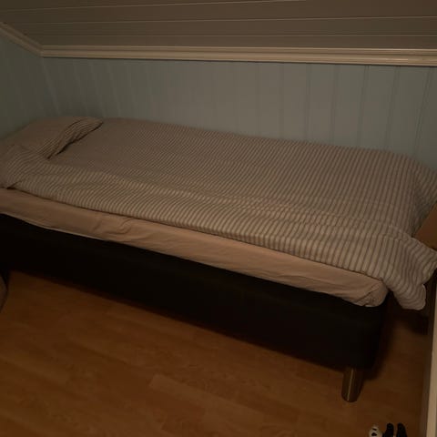 Selger dobbel IKEA Sultan seng med madrass som nesten ikke er brukt, har bare stått på et gjesterom som skal bli til et barnerom nå. Sengen er 150x200, Den kan deles opp til 2 senger så den er enkel å forflytte opp trapper eller smale dører. Den er litt skitten på selve kanten etter forflytning, men skal rense det vekk.