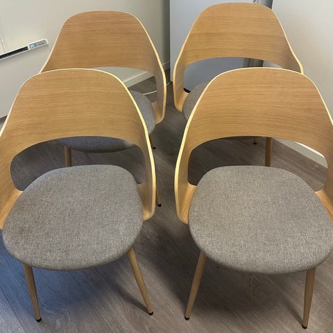Stolene ble kjøpt i desember 2025 og ble brukt bare ei uke. Selges på grunn av endret behov. Det er ikke noe slitasje, merke eller hull på stolene.