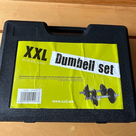 Fitness Matrix vektkoffert 15 kg manualsett i stål. Settet består av to manualstenger med gjenger og tilhørende skiver og stjernelåsere, levert i koffert for enkel oppbevaring og transport. Egnet til styrketrening av overkropp og armer, og kan brukes hjemme eller på treningsrom.