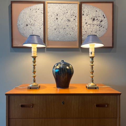 Selger 3 klassiske lamper. Husker ikke helt hvor de er kjøpt- den sorte er fra Townhouse interiør, de i sølv/krom fra lignende butikk (har 2 av sistnevnte). Må hentes på Skøyen i Oslo. Sort lampe skjerm ø 25 cm, krom fot skjerm ø 30 cm. 500 pr stykk.