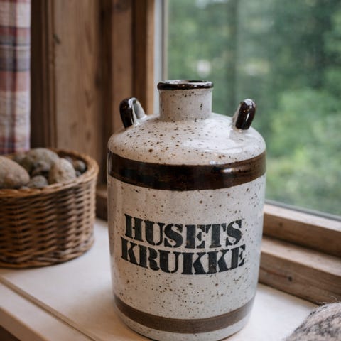 Artig keramikk karaffel det står «egen blanding» på. Har en sprekk. Så bør ikke brukes. Men fint til pynt. Kan sendes med vipps/postnord. Totalsum da er 100kr