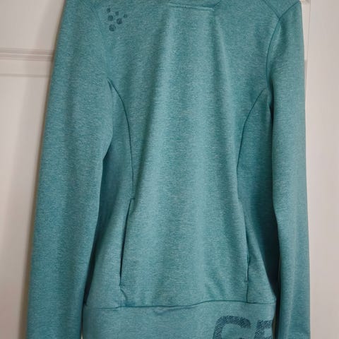 Craft hettegenser for dame i størrelse S. Hettegenseren er beige og laget av polyester. Modellen har fast hette med snøring og stor kengurulomme foran. Ermene har mansjetter, og genseren har en rett passform som passer til hverdagsbruk og lett trening.