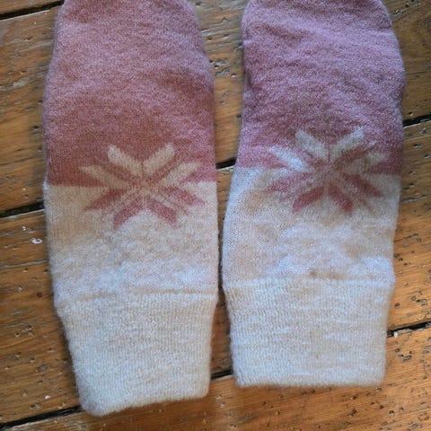 Lite brukte gode varme brune votter i str M, med pels på kanten, selges.