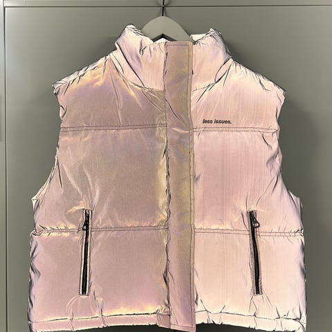 Colmar vest for dame i størrelse 40. Vesten er flerfarget med glansfull overflate og er laget i polyester. Modellen er vattert for ekstra varme og har høy krage. Den har glidelås i front og glidelåslommer i sidene. Passer til bruk som ytterplagg eller mellomlag på kjølige dager.