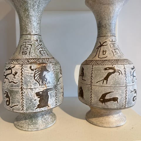 Kinesisk Keramikk fat med grønn glasur og dekorative mus