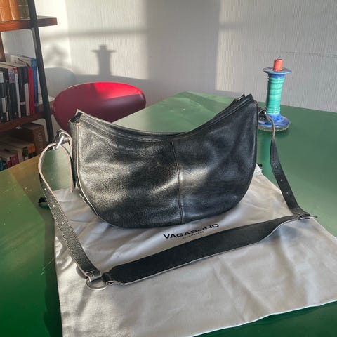 De to siste bildene er fra produsentens nettside og viser modellen i en annen farge og et annet materiale. Dette for å illustrere hvordan vesken sitter på og hva den rommer.